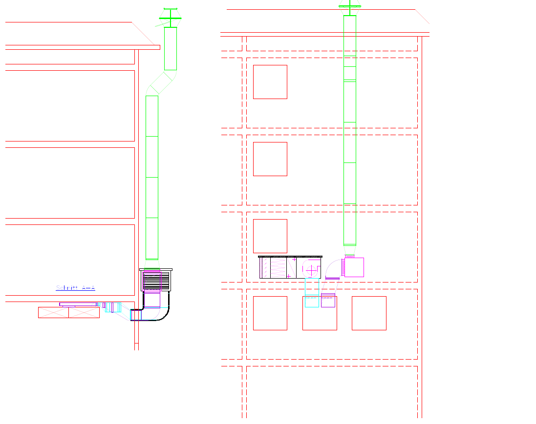 Air outlet conduit height of 15 meters including connection to ventilation, installation of deflector and mounting equipment/brakets.